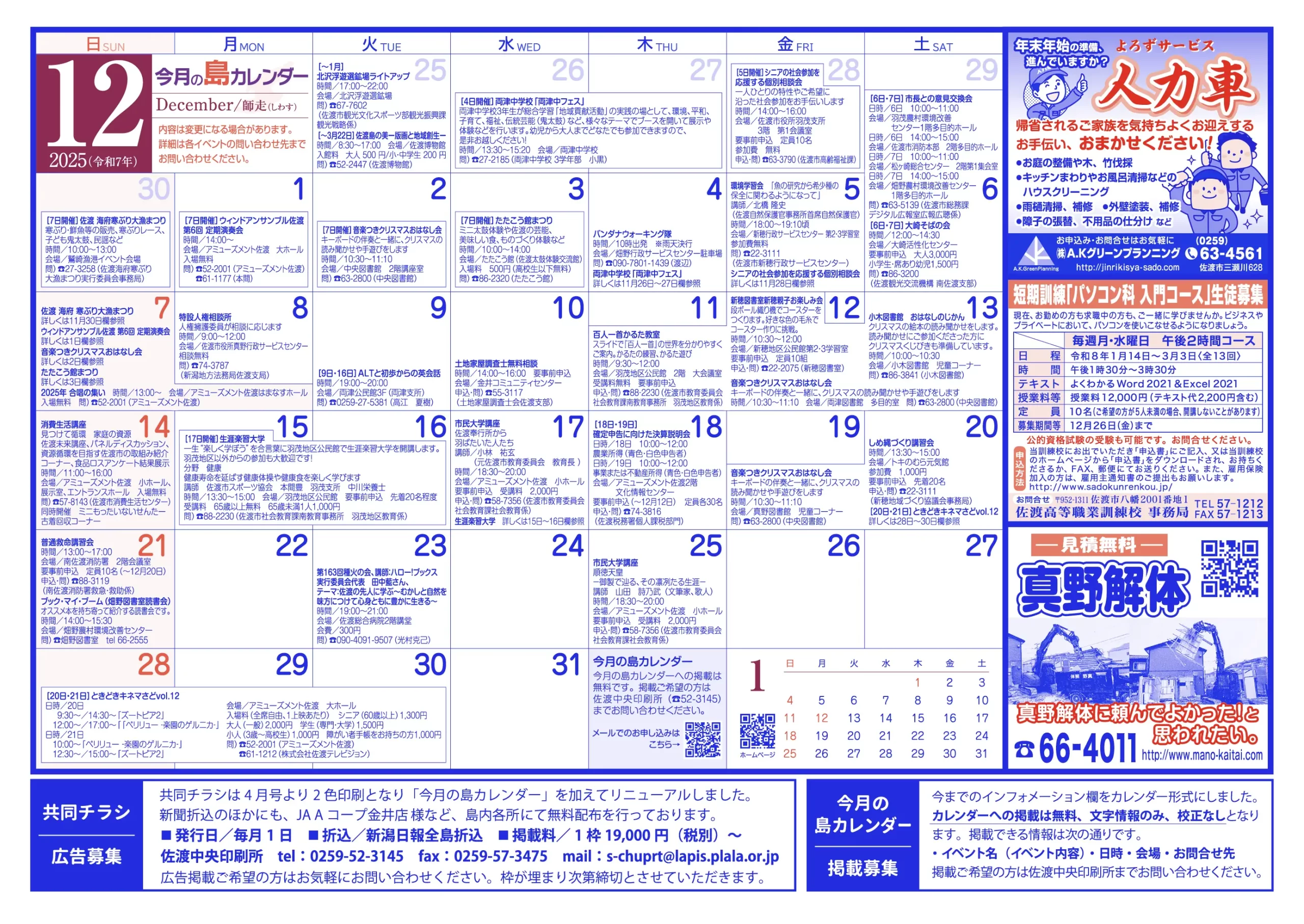 ※現在、通常月2回の発行を月1回(1日のみ)とさせていただいております。