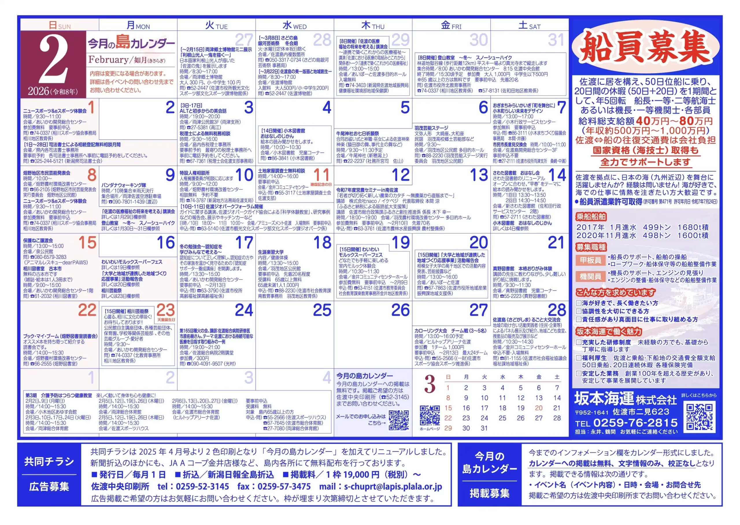2025年4月号から「今月の島カレンダー」が加わりました!